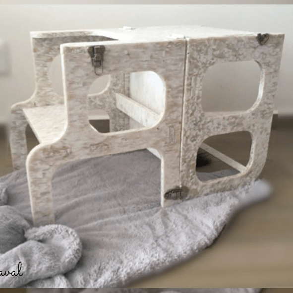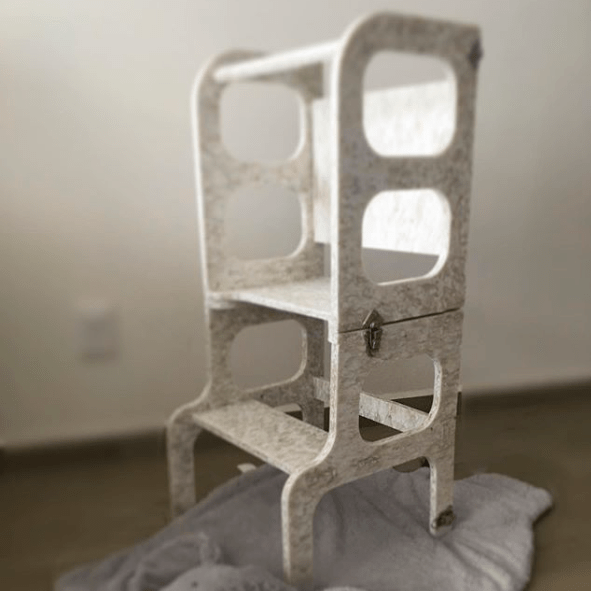 Estos muebles ecológicos Montessori, creación de Valeri Noé, mamá de un niño de 2.5 años y un bebé de 5 meses, están hechos de plástico reciclado (HDPE) y polialuminio. Se trata de torres de aprendizaje que se convierten en una escalera que permite que nuestros hijos puedan interactuar, de igual a igual, en la cocina, en el baño o en cualquier otro lugar. También pueden transformarse en escritorio y pizarrón. Los escritorios taburete duran toda la vida.