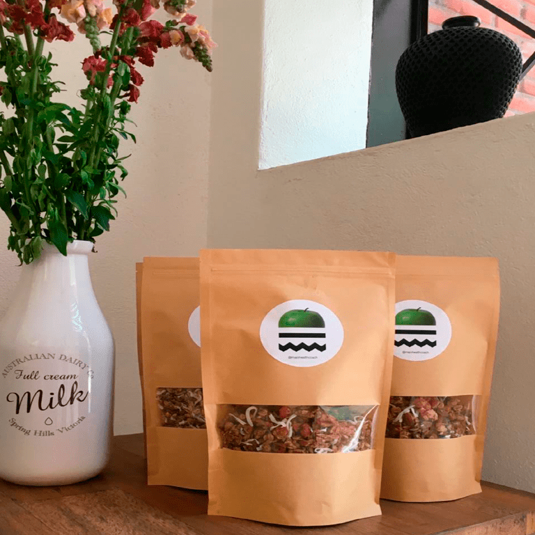 Majo Montiaga, mamá de un bebé de dos meses, es Health & Fitness Coach certificada, y tiene un emprendimiento de granolas artesanales sin conservadores ni azúcar añadida. Majo también da asesorías online.
