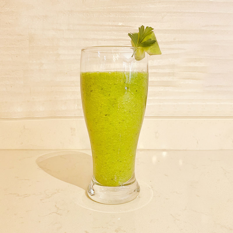 Este jugo verde aporta luteína y B-caroteno, que ayuda a la oxigenación de las células, al buen funcionamiento de hígado, intestinos, riñones y circulación sanguínea. Puede contribuir a reducir el riesgo de desarrollar procesos degenerativo, como las cataratas.