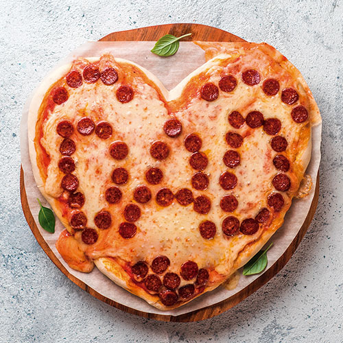 - Hornea el pan pita a 180°C por 8 minutos, para que el queso se derrita un poco. Saca y, con los mini círculos de pepperoni, forma la base del corazón y, en medio, la palabra Dad (o papá).