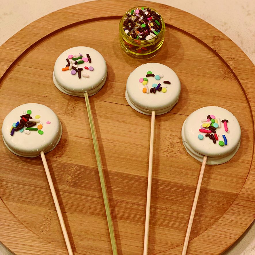 Paletas Oreo bañadas con chocolate blanco