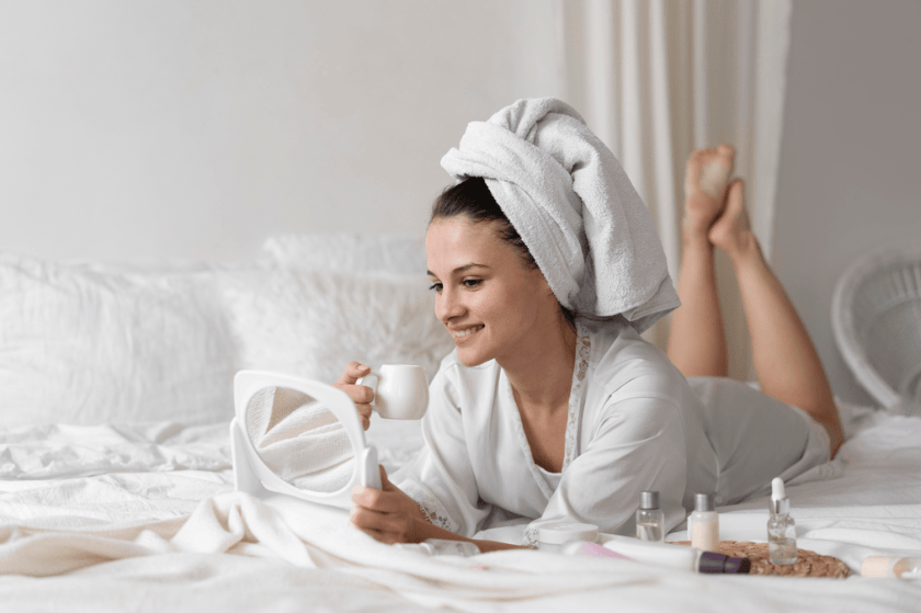 Prepara tu espacio. Pon música suave, apaga pantallas y cierra la puerta del baño. Respira hondo. Este momento es sólo tuyo: